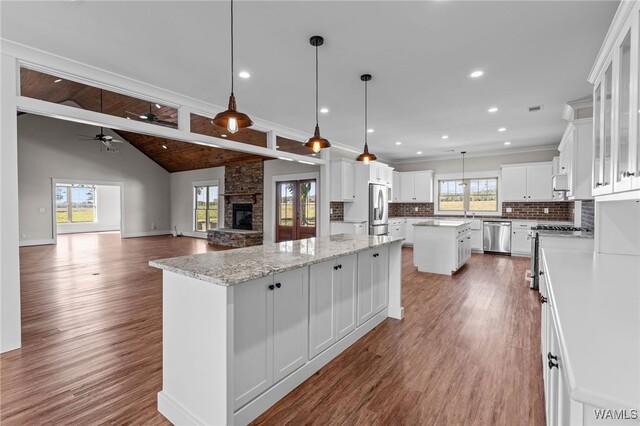 - Fireplace: Electric, Two, FamilyLivingGreatRoom, LivingRoom, WoodBurning