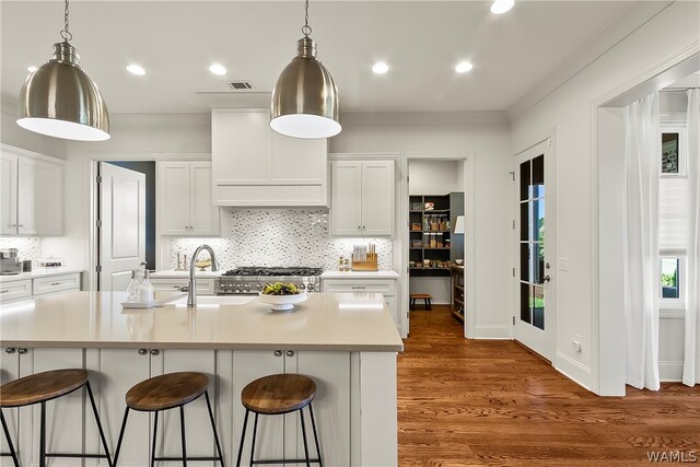 Impressive custom 5 bed, 4.5 bath home in Highgrove is truly a sight to behold! Perfectly positioned facing a courtyard with the neighborhood pool just steps away, this property not only offers a home, but a lifestyle you deserve! Hardwood floors flow throughout the main living areas along with custom finishes that are second to none. The open-concept kitchen effortlessly blends the dining room and living room. An upscale kitchen offers luxury appliances, such as ZLINE gas range + refrigerator, tiled backsplash, and oversized island. The main-level also holds the spacious primary suite and an additional bedroom and full bath. Upstairs, you’ll find three bedrooms and a spacious bonus room. The covered back porch with a fireplace overlooks a private fenced yard. Call now to see!